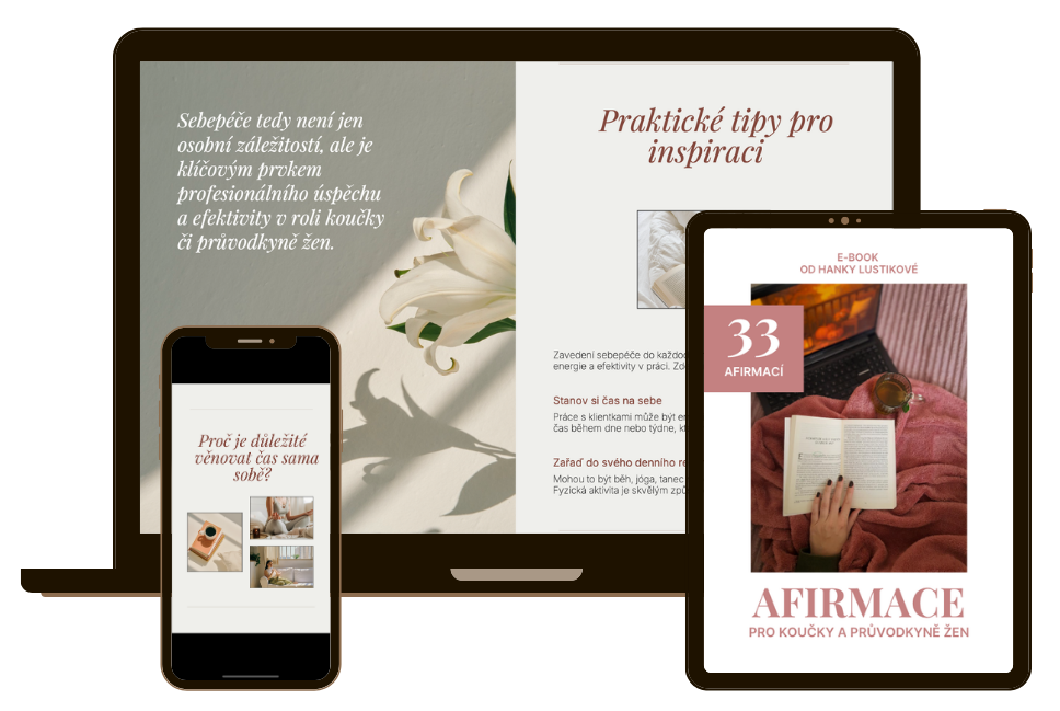 Vydejte se na cestu koučování a průvodcování žen. Náš E-book vám pomůže ještě více vnímat radost z práce koučky (bez vyvíjení tlaku). Obsahuje inspirativní afirmace, které vás posílí na vaší cestě, ale také praktické tipy a postřehy pro koučky a průvodkyně, které vám pomohou ve vaší práci s klientkami. Stáhněte si ho nyní zdarma!